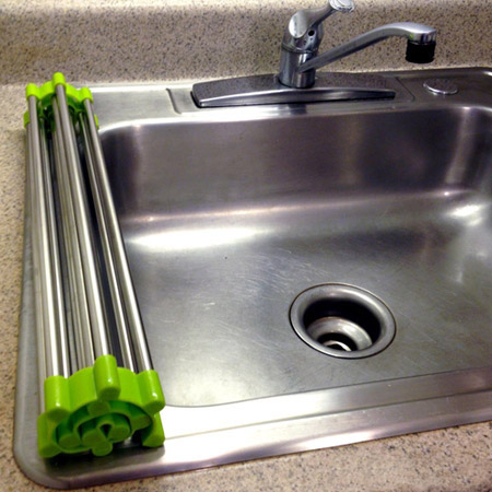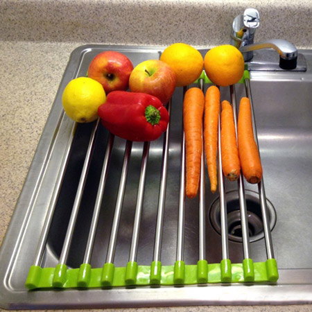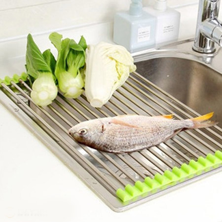 آبکش سینک جادویی محصولی خاص با کارایی بالا بوده که مورد استفاده در هر خانه ایی می تواند باشد. خانم های گرامی موقع شستن ظرف یا میوه یا تمیز کردن ماهی و … فقط کافیست این محصول را بر روی سینک آشپرخانه پهن کنید. بعد از خشک شدن میوه یا ظروف می توانید محصول را به راحتی تا کرده و جمع کنید. این محصول از استیل ضد زنگ تهیه شده و بسیار مقاوم و با کیفیت می باشد.