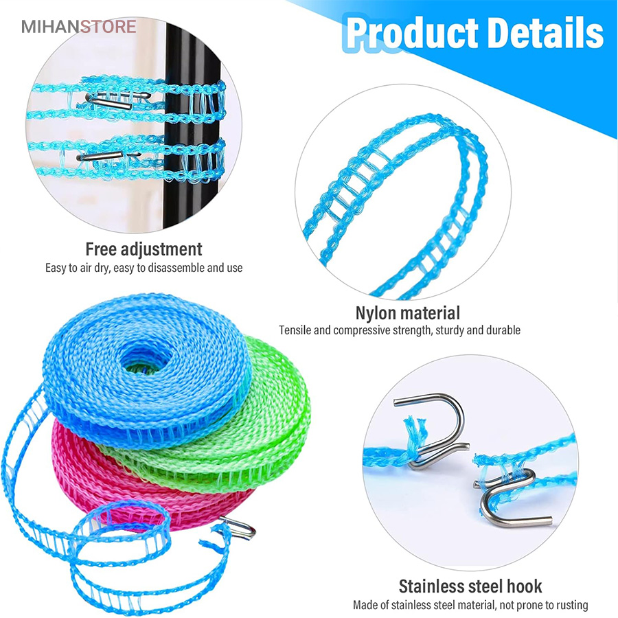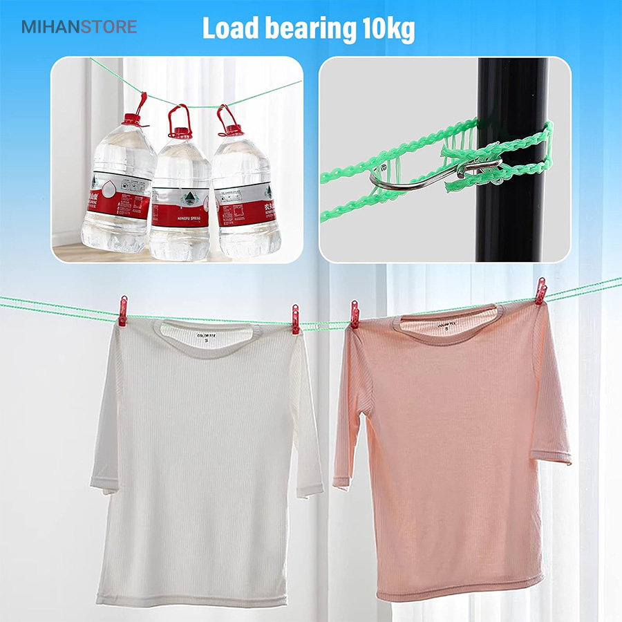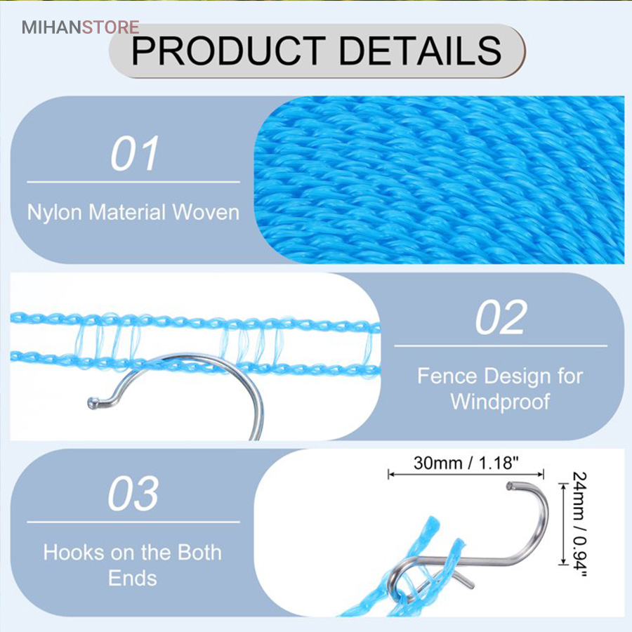 بند رخت بسیار بادوام در فضای باز، محکم و بادوام، طراحی نرده مانند منحصر به فرد باعث می شود لباس های شما سر نخورده و در یک جا جمع نشود، می توانید به راحتی انواع لباس ملحفه و اجسام سنگین را آویزان کنید.این محصول دارای دو قلاب استیل ضد زنگ به راحتی قابل نصب است و می توانید طول آن را بر اساس نیاز خود تنظیم کنید.
