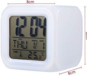 ساعت رومیزی Color Change HOME مدل DK-651 مربع شکل دیجیتالی با چراغ بدنه و پس زمینه و دماسنج و تقویم و آلارم بیدارباش بسیار زیبا با لامپ رنگارنگ داخلی و تغییر رنگ به مدت حدود 10 ثانیه هنگام فشار دادن بالای ساعت (فشرده شدن دکمه های TAP زبانه ای زیر ساعت) که باعث زیبایی دوچندان آن مخصوصا در فضای تاریک می شود.