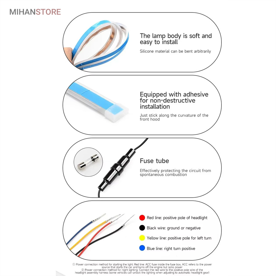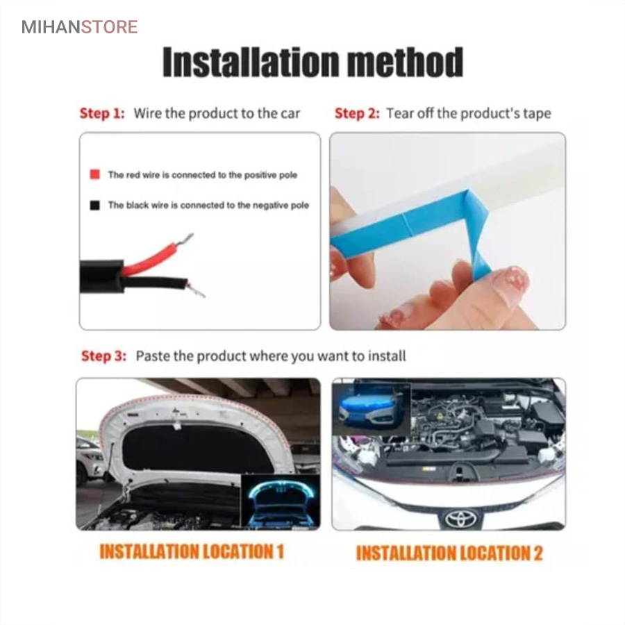ویژگیهای مهم نئون دی لایت کاپوت خودرو شامل موارد زیر میباشد: