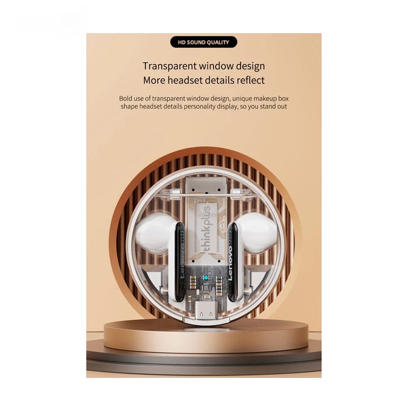 طراحی اصلیترین ویژگی این ایرباد جدید لنوو است. اندازه کیس شارژ 21× 60× 60 میلی متر و کمی بزرگتر از حد انتظار است. وزن کیس شارژ با ایربادهای داخل آن به 64 گرم میرسد. این مقدار تا اندازهای سنگین است؛ زیرا بخش نقرهای کیس از فلز ساخته شده است. در کیس شارژ شفاف است و لولا محافظ ضد بسته شدن دارد. بنابراین هنگام بازکردن آن صدا ایجاد میکند. هنگامی که قاب را باز میکنید، پورت شارژ، ماژول بلوتوث، نشانگر LED و باتری را مشاهده میکنید. همچنین کانتکتهای شارژ و آهنربا زیر ایربادها وجود دارند.